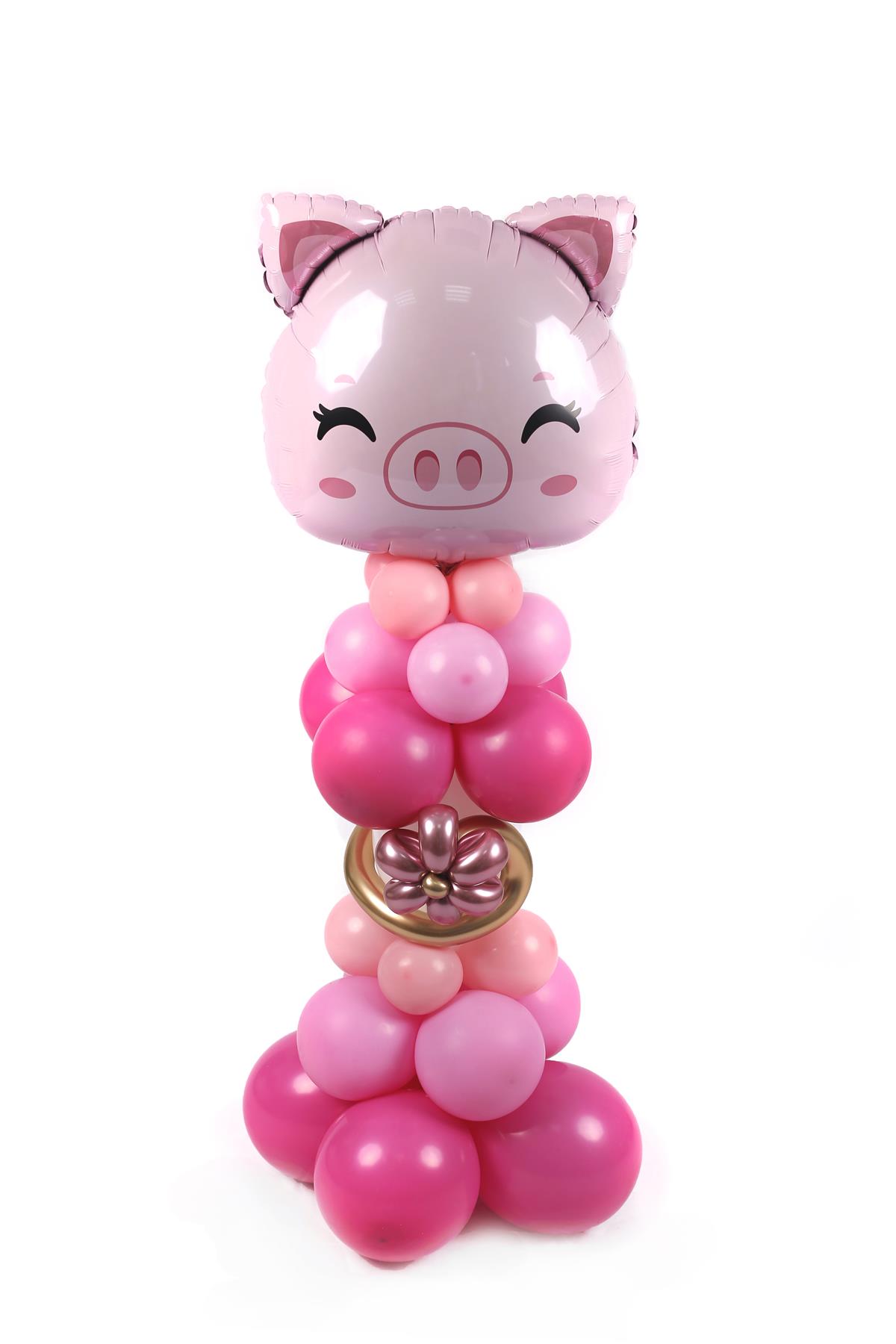Dekoracija je izrađena od latex balona različitih boja i veličina i jednog folijskog balona u obliku glave svinjice veličine oko 70 cm. Visina cijele dekoracije je oko 160 cm.